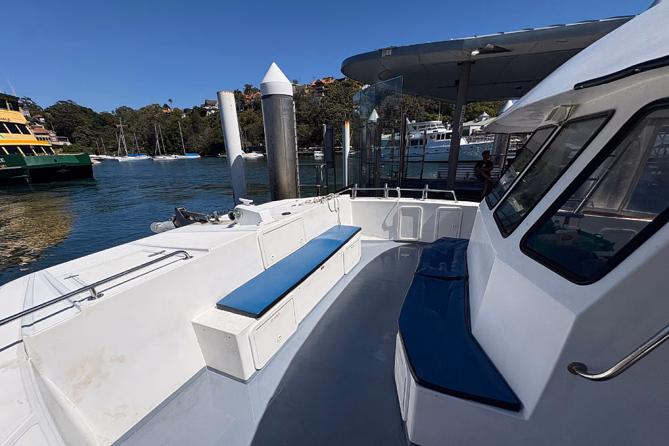 Arcadia is a spacious 12-metre Cougar Cat power catamaran, offering exceptional stability and wide open deck areas for relaxed cruising on Sydney Harbour. With a generous 5.5-metre beam, BBQ facilities, swim steps for easy water access and room for up to 32 guests, Arcadia is perfect for casual celebrations, group outings and fun-filled days on the water.