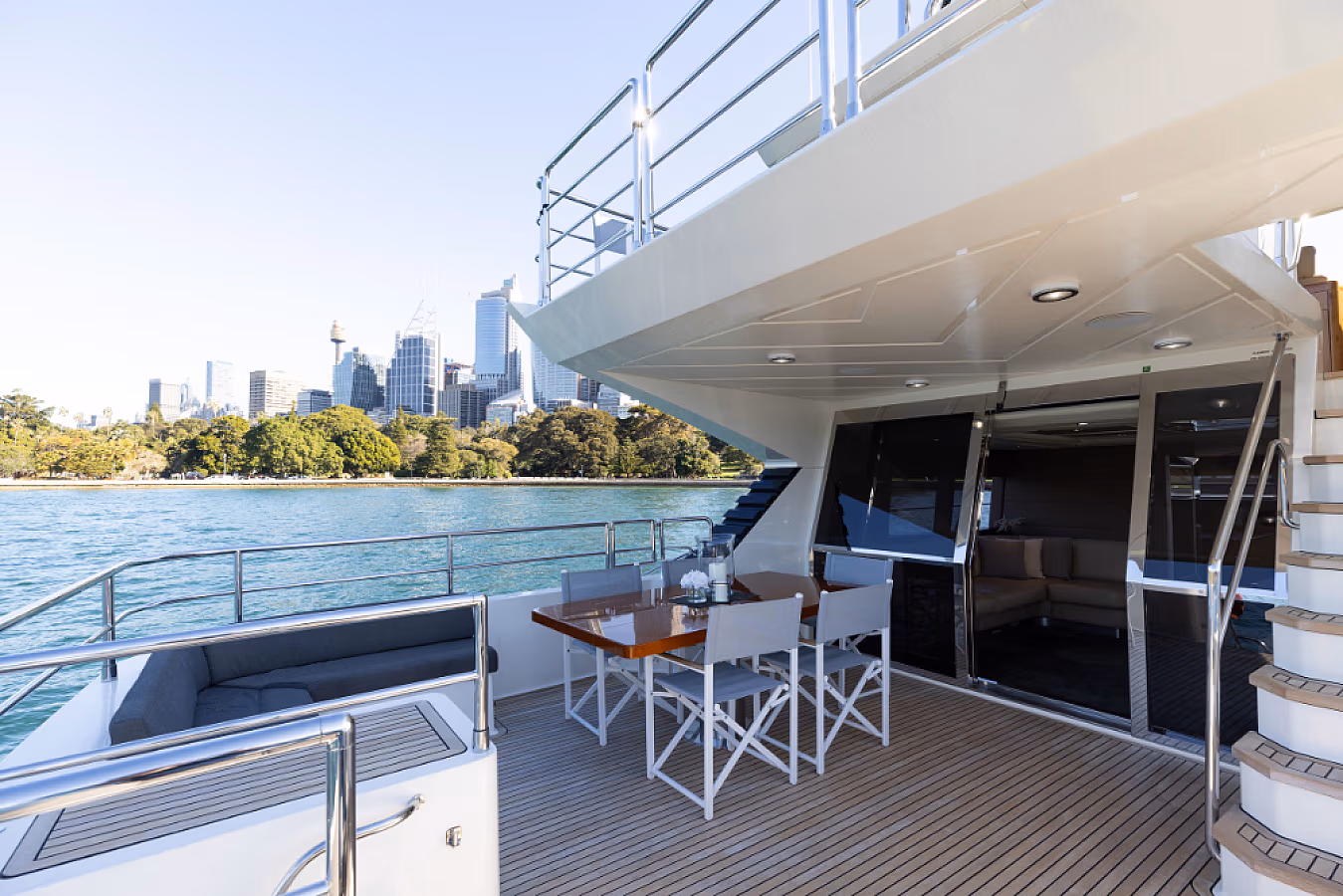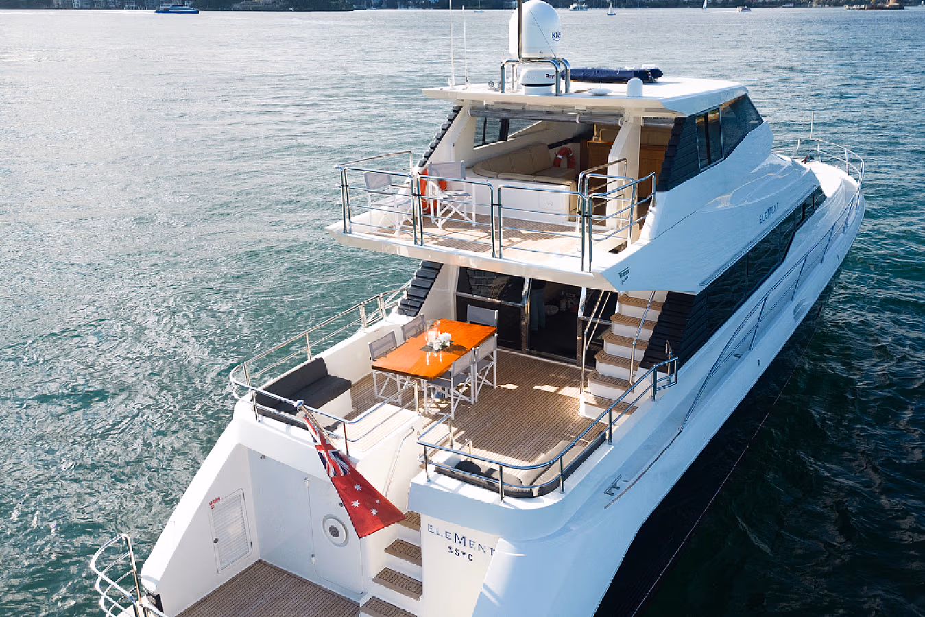 Spent a magical afternoon on the ELEMENT for my 50th birthday bash with close friends. The expansive aft deck was everyone's favourite spot for sipping cocktails and soaking up the harbour views. The crew was attentive and ensured everything ran seamlessly. The boat's design is exquisite, with plenty of comfortable lounging areas. A memorable day well worth it!