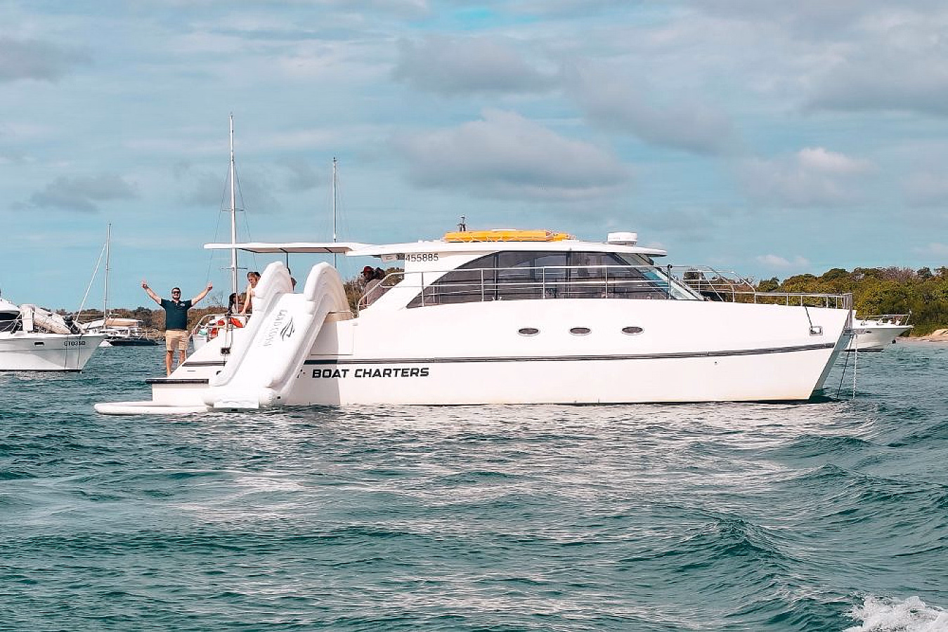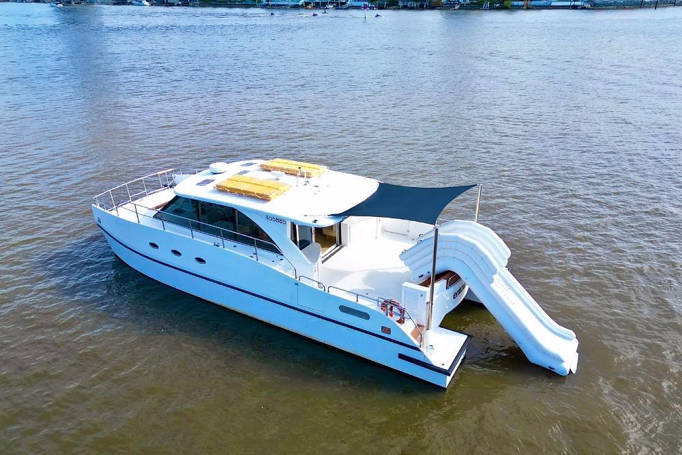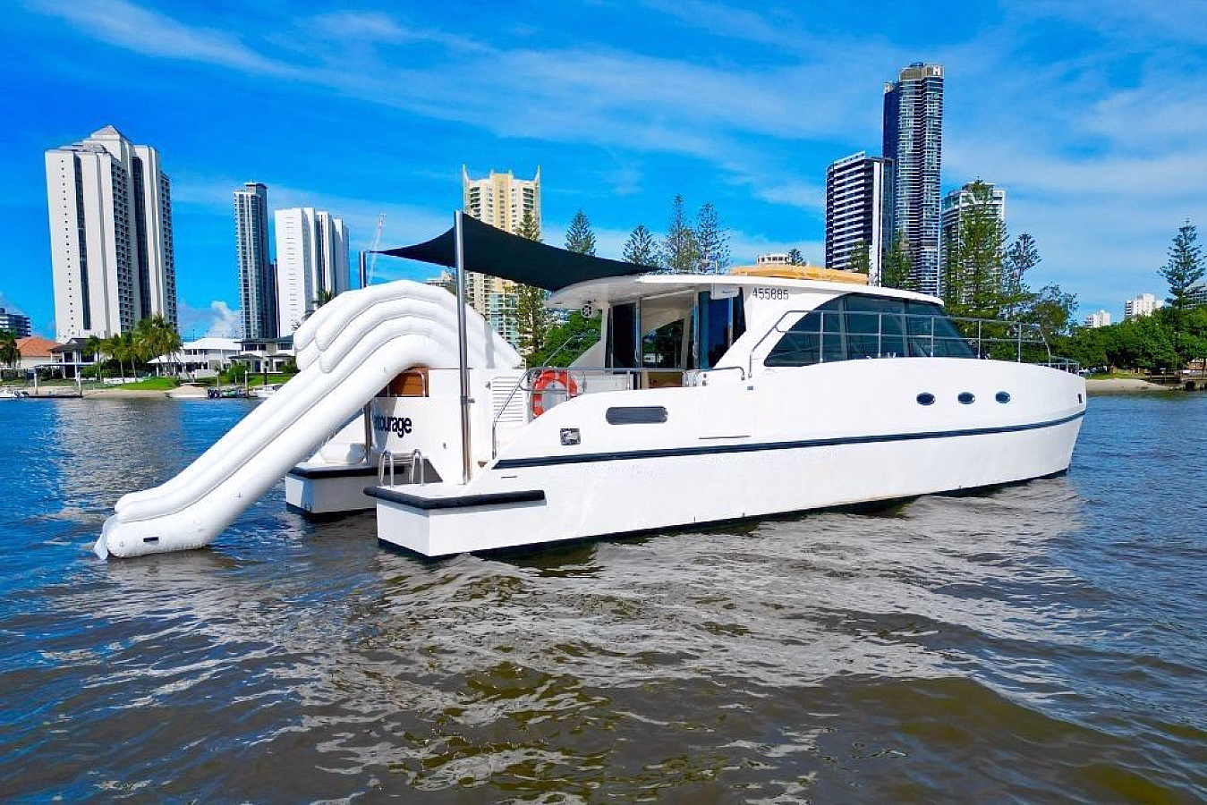 Entourage is your all-in-one floating venue, blending laid-back luxury with non-stop entertainment. Perfect for parties, celebrations, or corporate events, this catamaran offers a smooth and stylish cruising experience with plenty of space to relax or turn up the energy. From its superyacht-style water slide to onboard karaoke and a fully air-conditioned saloon, Entourage is built to impress both on and off the dance floor.
