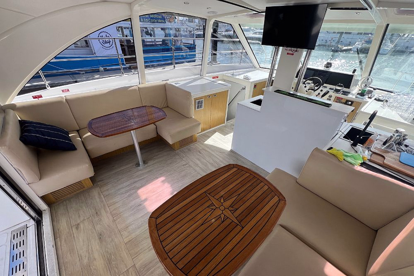 Zephyr Star boast a single flat entertaining area with boutique fitout for private Pittwater boat hire