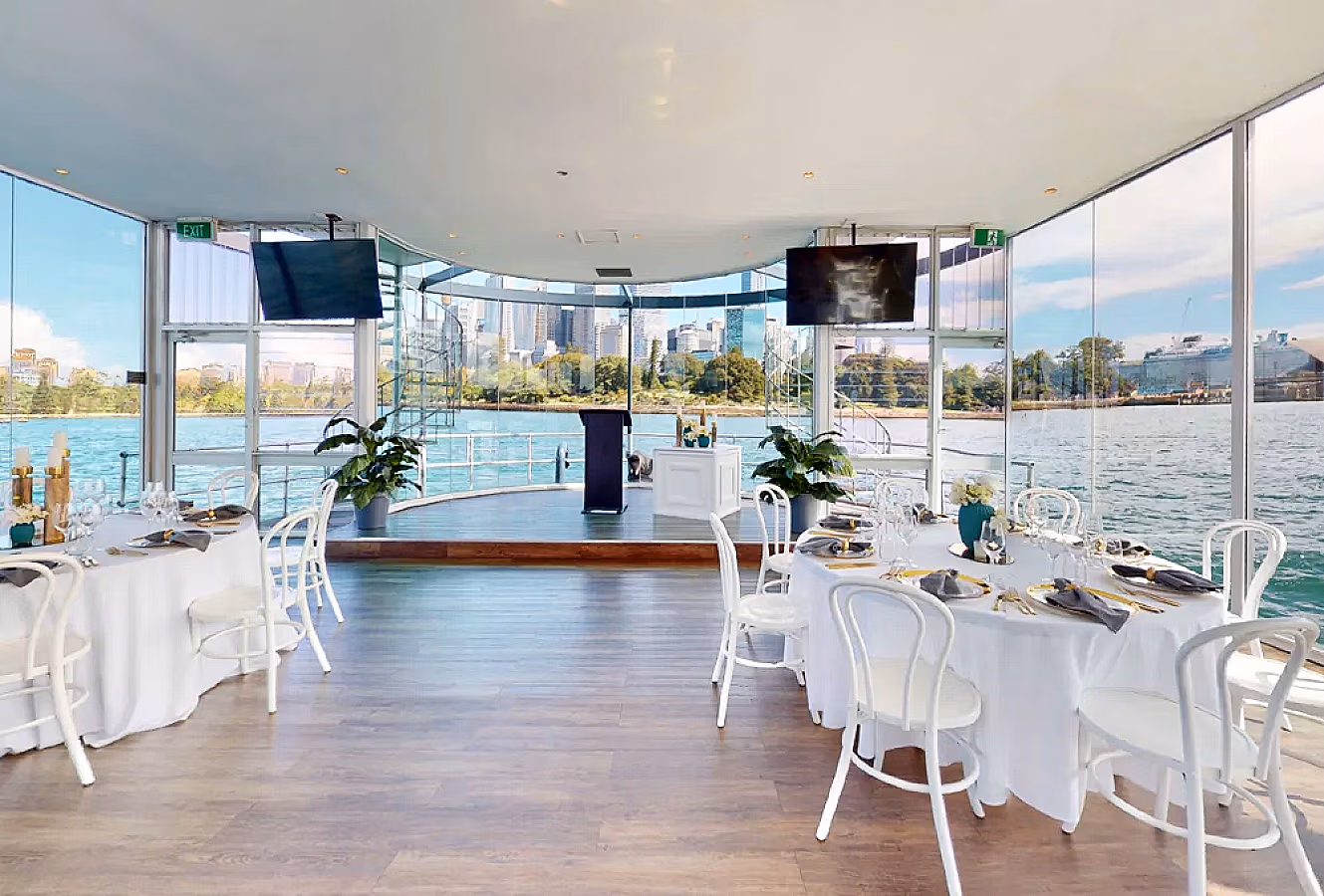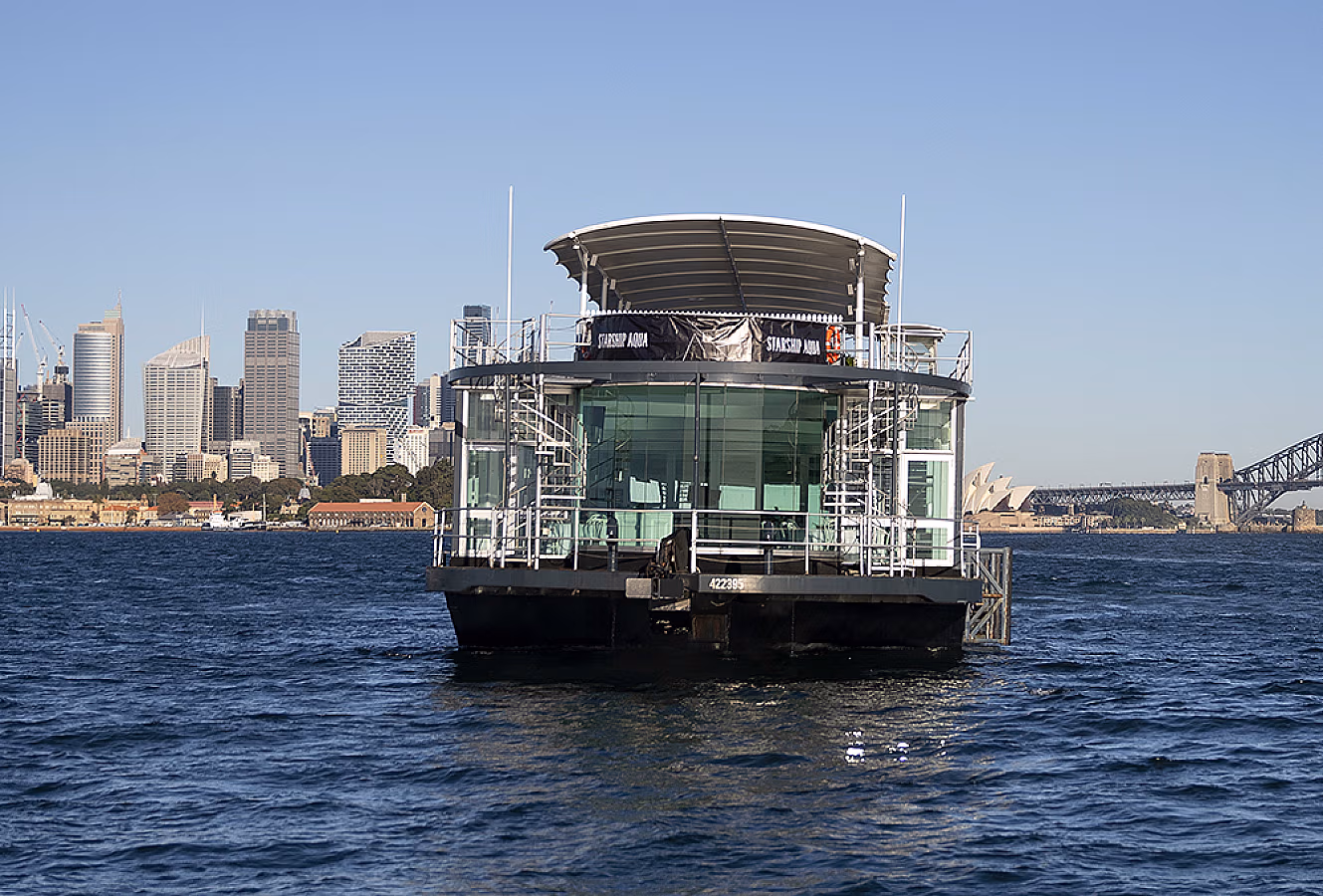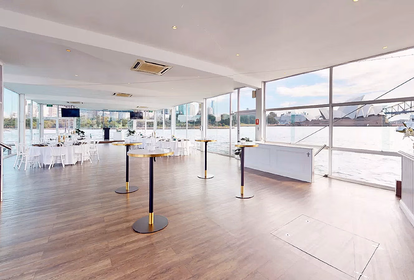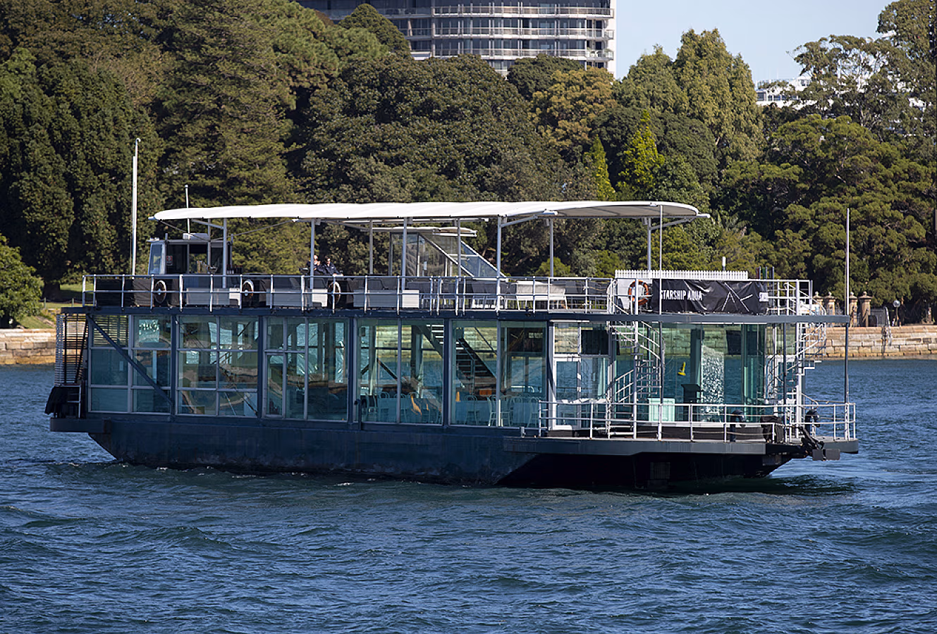 Starship Aqua is one of the most popular functions vessels on Sydney Harbour offering a huge upper deck entertaining area with bar facilities for those beautiful warm summer days and air-conditioned dining area on the lower deck with a large stage, dance floor and surrounded by 3 metre high floor to ceiling glass walls for 360° Harbour views.
