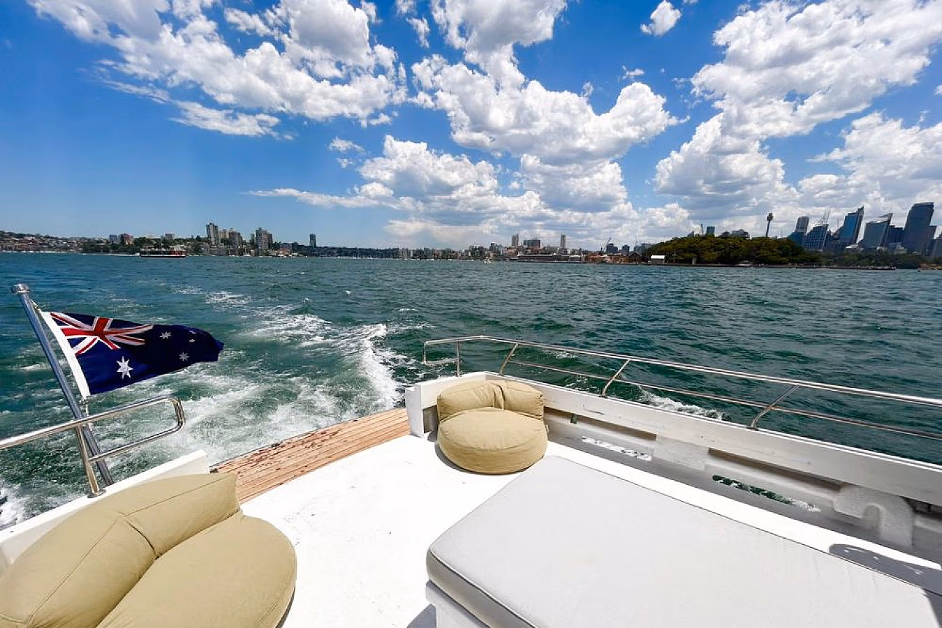 The Yachty is a stylish and versatile Sydney Harbour charter vessel designed to bring people together in one spacious, open-plan setting. Her expansive aft deck serves as the heart of the experience—an adaptable social space that can be transformed for anything from casual gatherings and laid-back celebrations to more polished, intimate events. Inside, The Yachty features a relaxed beach-house aesthetic with modern, neutral tones that complement any occasion. With its welcoming design and seamless indoor–outdoor flow, this vessel offers an effortless and enjoyable way to experience Sydney Harbour in comfort and style.