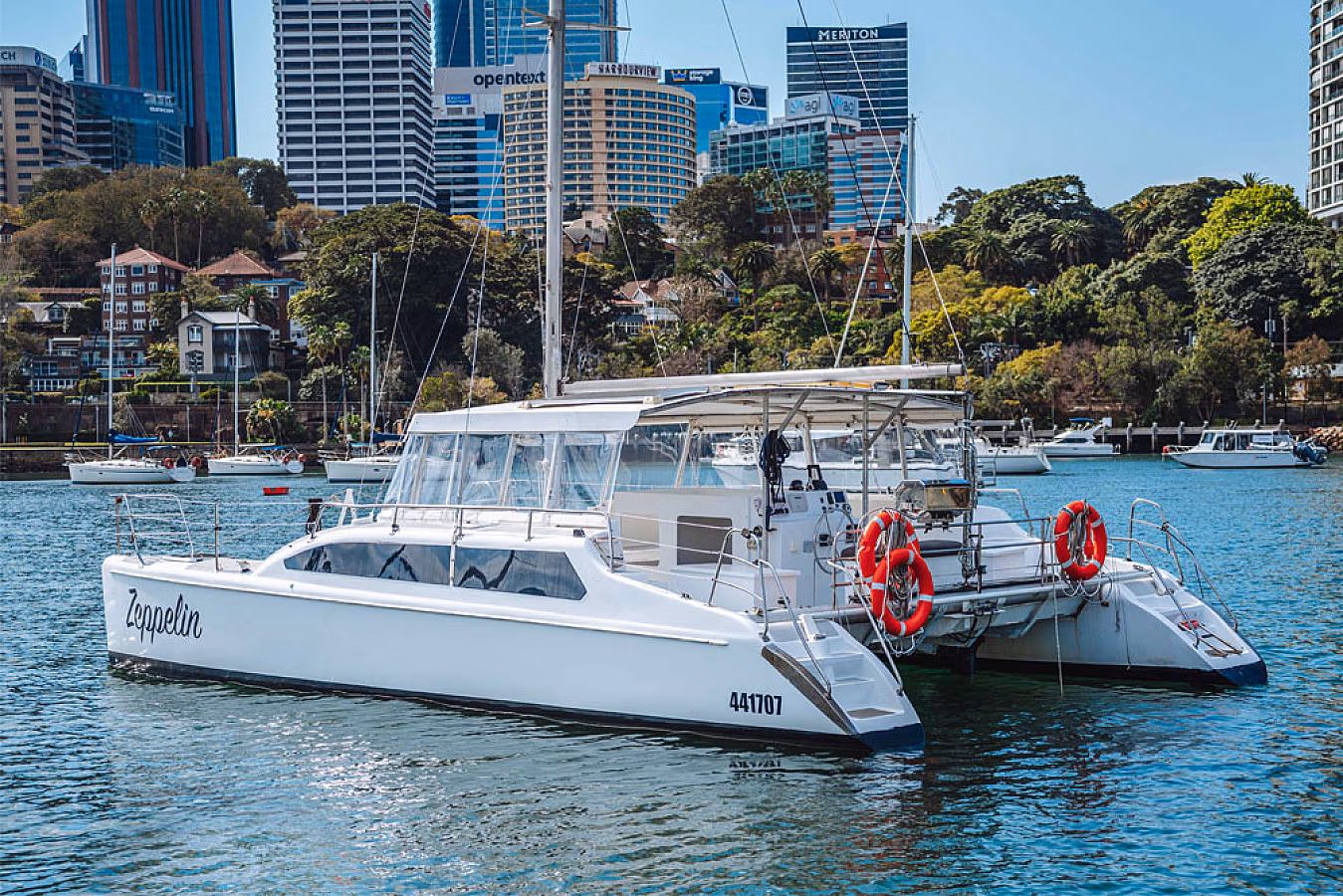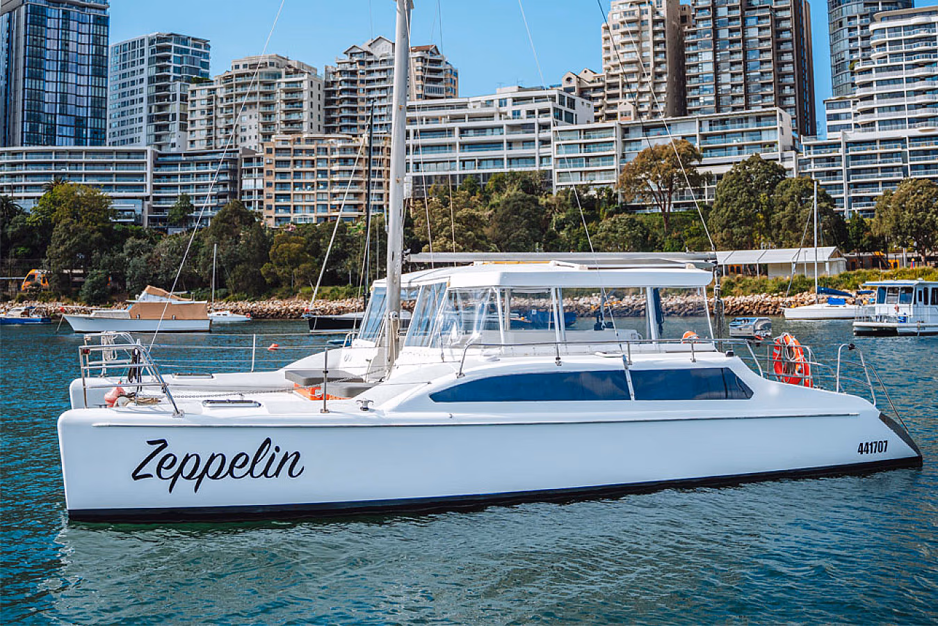 Zeppelin, a vibrant 30-person catamaran, redefines the Sydney Harbour Boat Hire experience, making it the ideal choice for both large social gatherings and intimate special occasions. Embrace the beauty of Sydney Harbour aboard this exceptional vessel that promises an unforgettable journey.