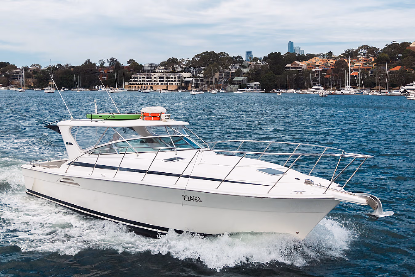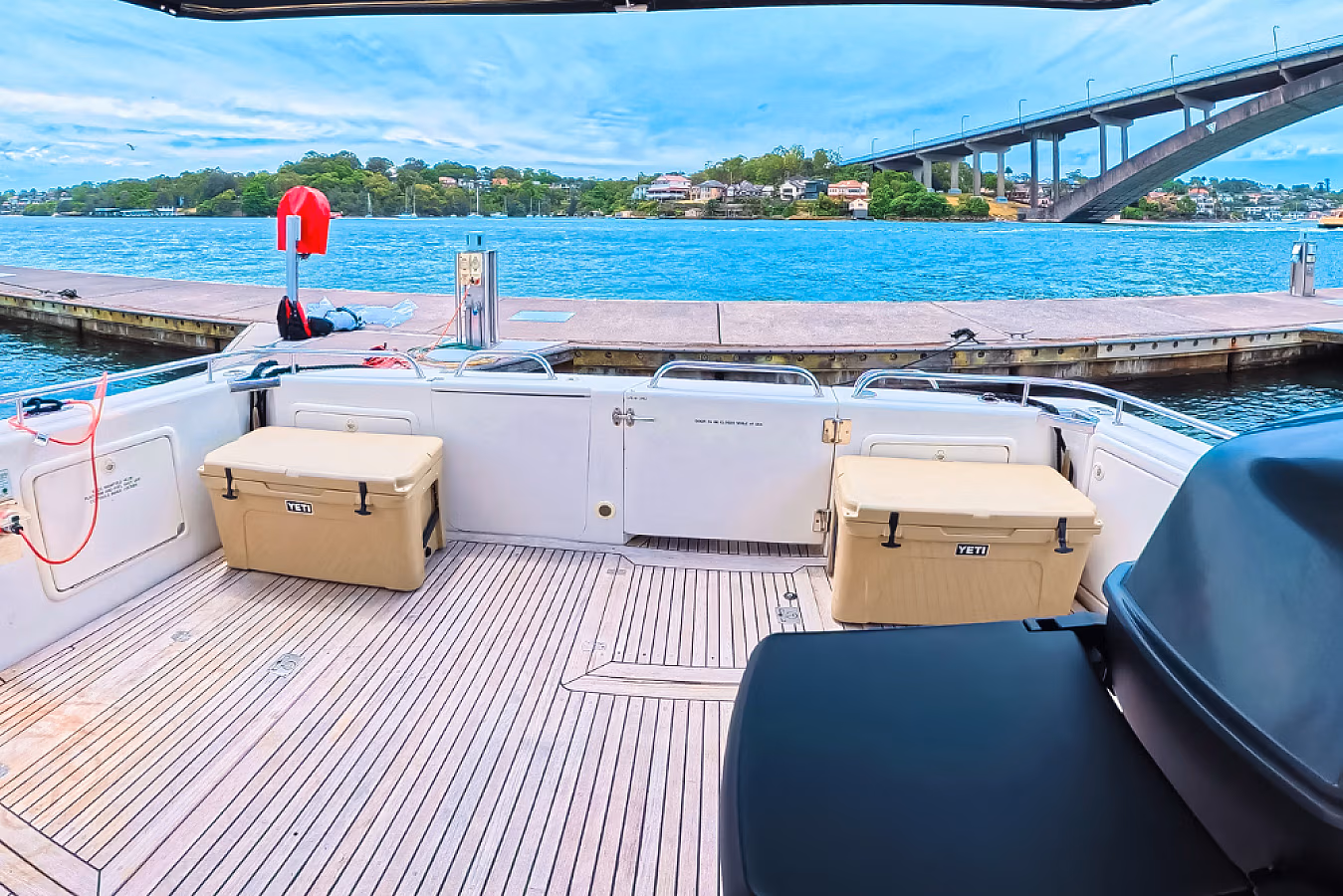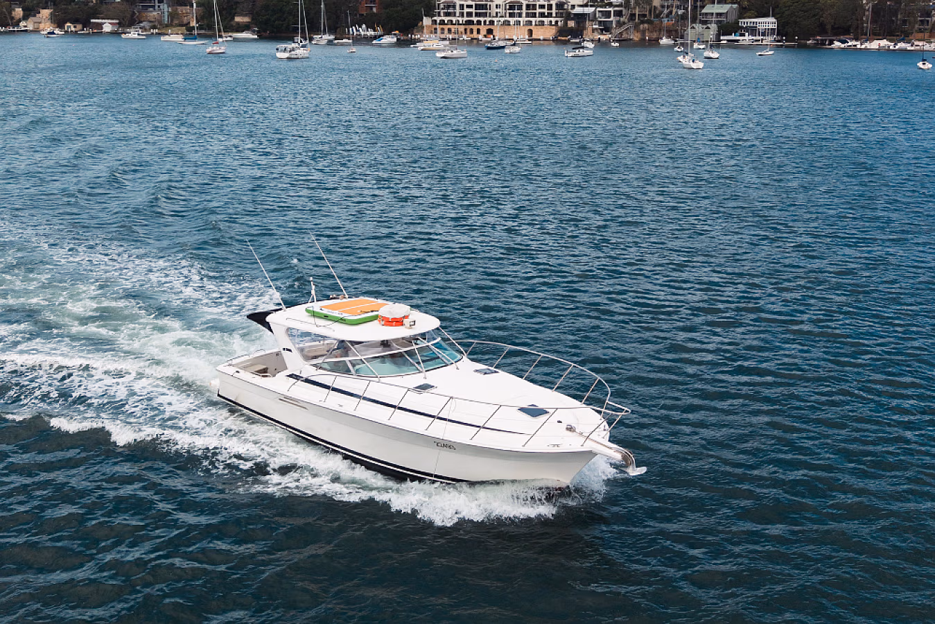 Zodiac is a modern Riviera sports boat perfect for small private charter groups of up to 14 guests on Sydney Harbour.