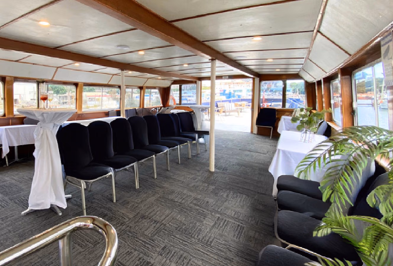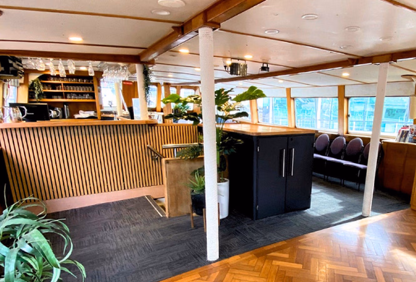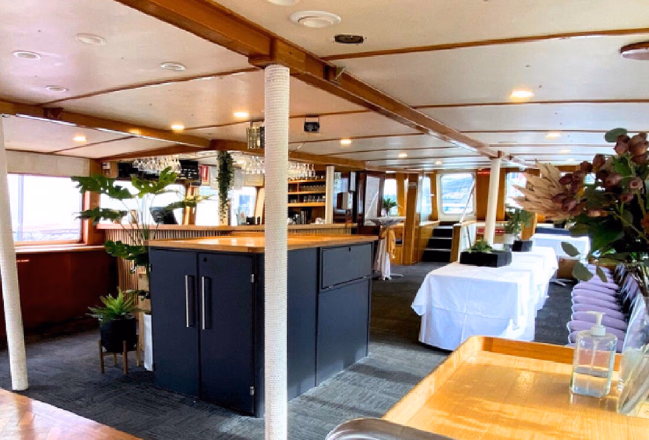 Enjoy two decks with outdoor areas, and large windows which surround the vessel. The classic wooden interior makes you feel comfortable and at ease. This is the perfect way to enjoy this spectacular night, with your friends and family on board!