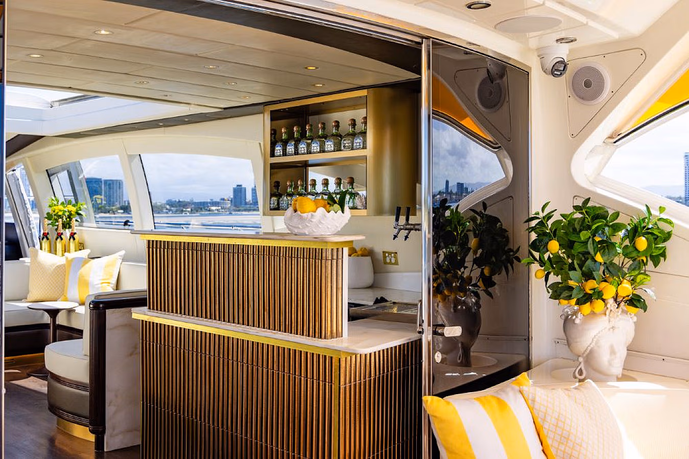 YOT Capri a 92ft, this ultra glamorous vessel has luxurious entertaining spaces spread across two levels including the exclusive ‘Bellissimo Bar’.