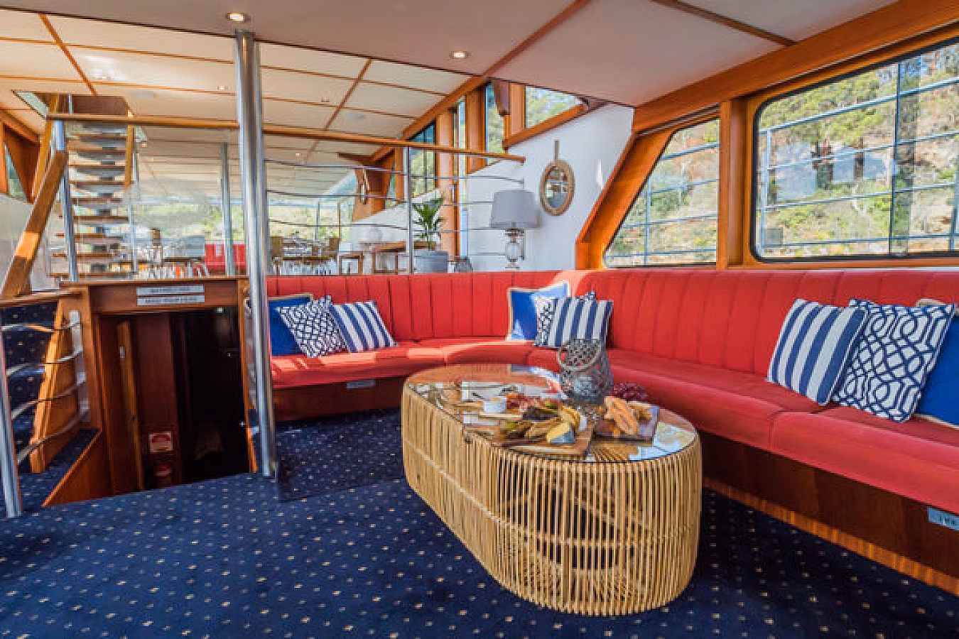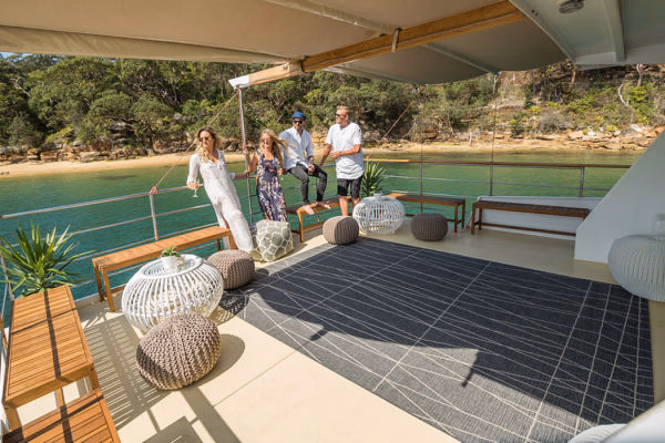 Two private areas will be available for large groups—the top back deck (max 40) and the soon-to-be-installed Sky Lounge on the foredeck (30–40 pax). Please enquire if you wish to reserve these sections (additional costs apply).